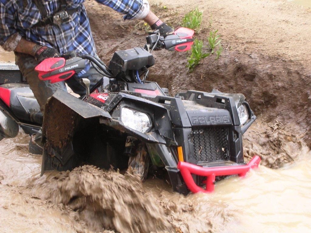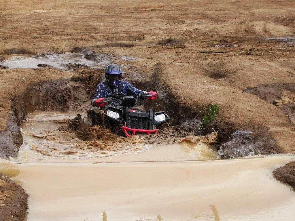A new 2013 Polaris Sportsman XP850 HO ESP, so the second ride went a lot better and enjoyed a day out in the rain, though did cop a warning from the Ranger on the way out.
