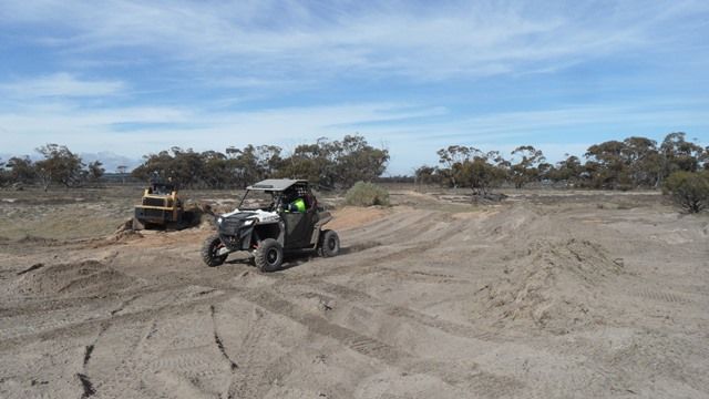 Well it's been a busy time, we had a bush run from Tuesday to Thursday covering a lot of rough terrain made harder by lack of knowledge of the area, thank god for GPS units, then back to Perth , a nights rest then Friday out to the block to work on the track which was also a successful weekend, help came from a few volunteers who run the Polaris RZR side by sides, they donated their time and machines to upgrade the track putting in table tops, ski jumps and repairing the 5k track which is spread out over 200 acres so it is a pretty fast track. We also put in a 1.5k track covering about 25 acres so it has very fast sweepers and quite busy, or it was on my heavy 4x4 quad anyway, can't wait to get my sports quad finished to run this track.