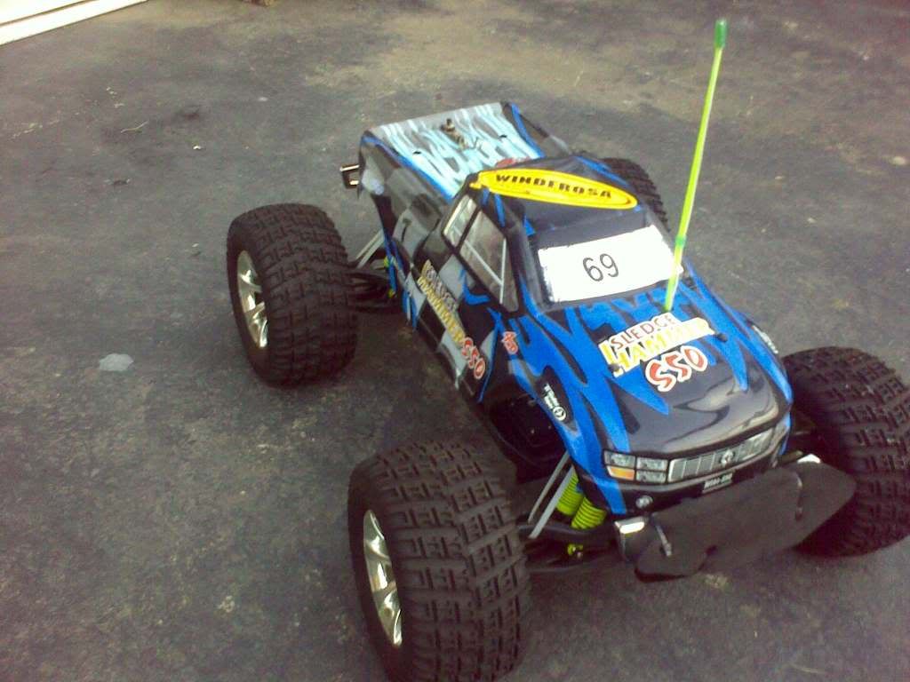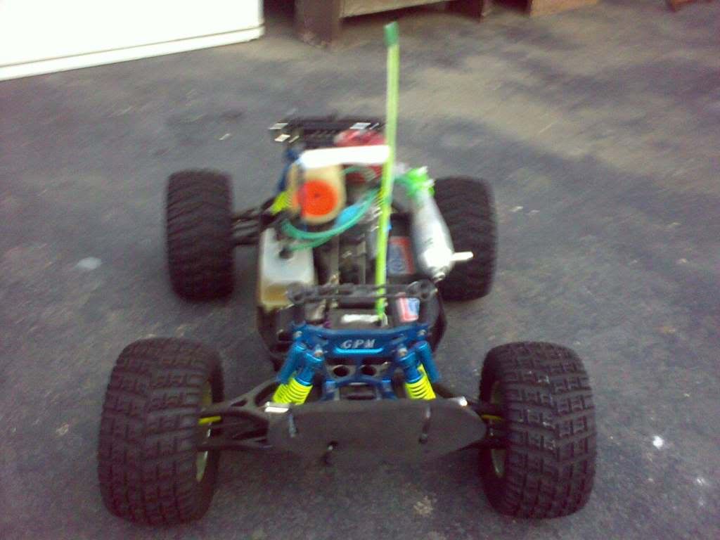 heaps of extras alot of the parts are transfered in to blue billet. aftermaret exhaust takes 25% nitros fuel. said to be hitting at a speed of 110 at the perfect tune. this is a very heavy duty vehicle. its on the 2 back wheels most of the time. spent heaps of money on this thing. im seling it because i do not no how to tune it properly comes with remote, fuel strter pack and alot moree. $ 500 ono
